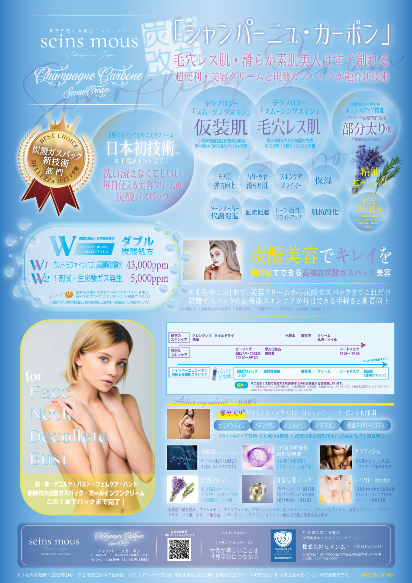 “部分太り®美容液”として知られる「ボーテロンド」をはじめ、エクソソーム美容液「クラッキングWエクソソーム」、香りのシリーズ「シャンパーニュ・カーボン」など、先進技術と感性を融合した製品を展開。